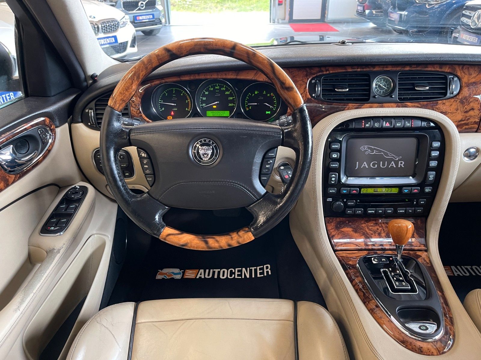 Airbag Fahrer-/Beifahrerseite, Audiosystem Jaguar (Radio/CD-Player), Außenspiegel mit Umfeldleuchte, Bluetooth-Schnittstelle, Bodenbelag/Teppich Velours, Bremsassistent, Computer-Activ-Technic-Suspension (CATS), Einschaltautomatik für Fahrlicht / Lichtsensor, Elektron. Traktionskontrolle, Fensterheber elektrisch vorn + hinten, Getränkehalter hinten, Getränkehalter vorn, Heckscheibe heizbar, Innenausstattung: Classic, Innenausstattung: Dekoreinlagen Walnusswurzelholz, glänzend, Innenspiegel mit Abblendautomatik, Karosserie: 4-türig, Klimaautomatik 2-Zonen, Kopf-Airbag-System (Windowbag), Kopfstütze hinten mitte, Lendenwirbelstütze Sitz vorn links und rechts, elektr. verstellbar, Lenkrad mit Multifunktion, Lenksäule (Lenkrad) elektr. verstellbar, LM-Felgen, Mittelarmlehne hinten mit Getränkehalter, Motor 2,7 Ltr. - 152 kW V6 Diesel KAT, Park-Distance-Control (PDC) hinten, Reserverad als Notrad, Seitenairbag vorn, Sitz-Paket Soft-Grain, Sitzheizung vorn, Verglasung getönt