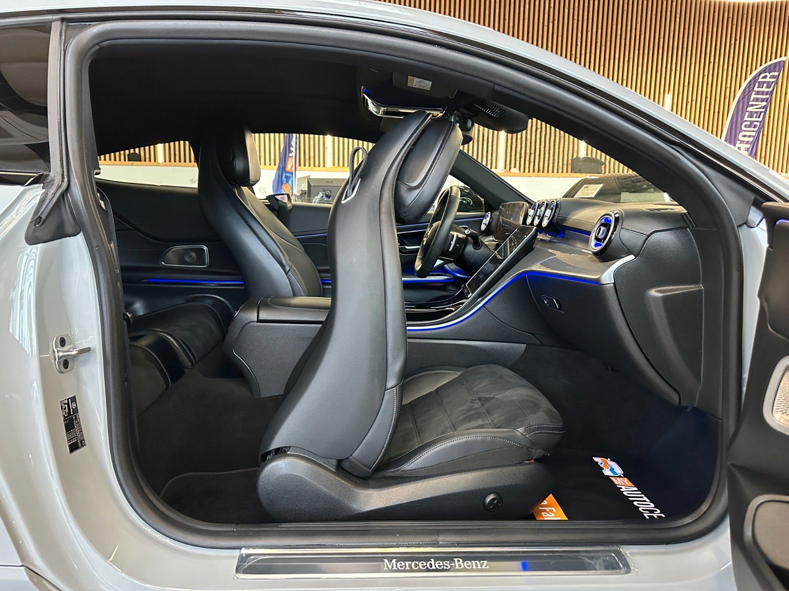 Ablage-Paket, Ambiente-Beleuchtung (Plus) mit direkter Lichtlinie, AMG Premium, AMG-Line Interieur, Armaturentafel Oberteil in Nappaoptik, Ausstattungs-Paket USB, Außenspiegel mit Totwinkel-Assistent, Digital Light, Digitales Instrumenten-Display, Edelstahlpedale Sportdesign, Einstiegsleisten beleuchtet, Elektromotor 17 kW (Hybridantrieb), Fahrassistenz-System: Verkehrszeichenerkennung, Fensterheber elektrisch vorn + hinten, Fußmatten AMG, Gurtbringer, Induktionsladeschale für Smartphone, Infotainment-System: Remote Service (Plus), Innenausstattung: Zierteile Metall Struktur, Innenhimmel schwarz, Innenraumlicht-Paket, Karosserie: 2-türig, Keyless Go Startanlage, Klimaautomatik (Thermatic), Kommunikationsmodul Ramses (5G), Kraftstofftank: 66 Ltr. (größerer Inhalt, Volumen 1), Lenkrad (Leder Nappa, unten abgeflacht), Lenkrad (Sport) mit Multifunktion, Memory-Paket, Mercedes-Benz Notrufsystem, Mild-Hybrid 207 kW (Motor 2,0 Ltr. - 190 kW CGI), Mittelkonsole schwarz hochglänzend, Multimediasystem MBUX (Premium), Park-Paket mit 360° Kamera, PRE-SAFE-System, Reifen-Reparaturset (Tirefit), Reifendruck-Kontrollsystem, Rücksitzlehne geteilt / klappbar, Schadstoffarm nach Abgasnorm Euro 6d, Seitenscheiben hinten und Heckscheibe abgedunkelt, Service-System: Fingerabdruck-Scanner für MBUX, Service-System: MBUX Augmented Reality für Navigation, Service-System: MBUX Navigation Premium, Sitzbezug / Polsterung: Ledernachbildung Artico / Mikrofaser Microcut, Sitzheizung vorn, Smartphone integriert, Smartphone Schnittstelle (Android Auto), Smartphone Schnittstelle (Apple CarPlay), Spiegel-Paket, Sport-Fahrwerk, Styling-Paket (AMG / Exterieur), Zentral-Display (OLED)