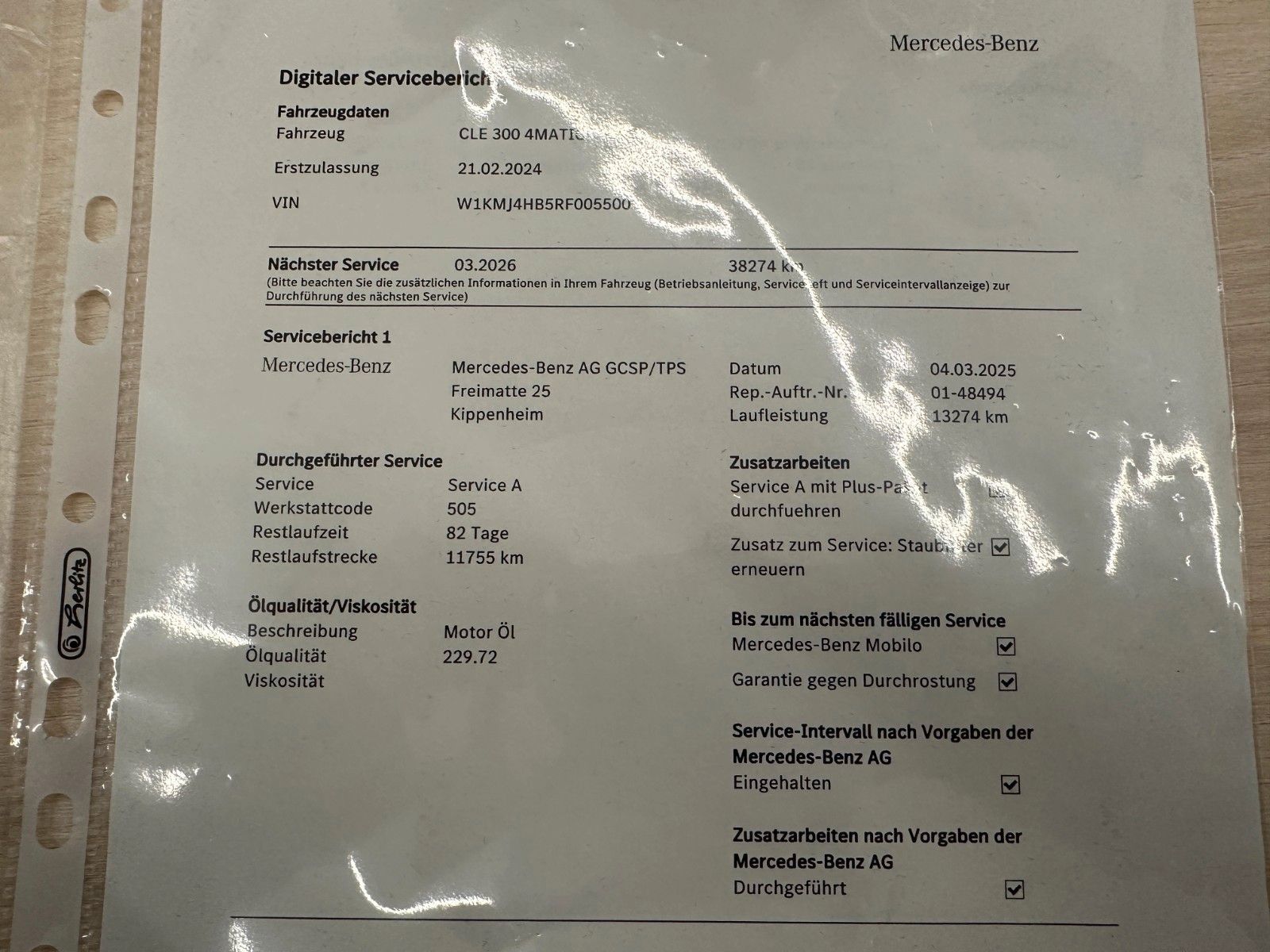 Letzte Inspektion bei 13274 KM 03.2025