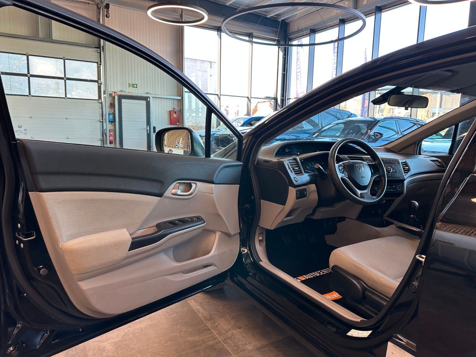 Airbag Beifahrerseite abschaltbar, Airbag Fahrer-/Beifahrerseite, Anzeige für Reifendruck im Display, Audiosystem: Radio mit CD-Player (MP3-fähig), Automatische Fahrlichtschaltung / Lichtsensor, Außenspiegel asphärisch, links, Außenspiegel elektr. verstell- und heizbar, beide, Blinkleuchte in Außenspiegel integriert, Colorverglasung, Elektr. Bremskraftverteilung, Fahrassistenz-System: Berganfahrhilfe, Fahrassistenz-System: Eco Assist (Econ Modus), Fahrassistenz-System: Notbrems-Assistent, Fensterheber elektrisch vorn + hinten, Getränkehalter hinten, Getränkehalter vorn, Gurtstraffer, Handschuhfach beleuchtet, Isofix-Aufnahmen für Kindersitz, Karosserie: 4-türig, Klimaautomatik, Kopf-Airbag-System, Kopfstützen hinten (3-fach), Lautsprecher hinten, Lautsprecher vorn, Lenksäule (Lenkrad) höhen-/längsverstellbar, Leseleuchten vorn, LM-Felgen, Modellpflege, Motor 1,8 Ltr. - 104 kW i-VTEC KAT, Multi-Info-Display (i-MID), Multifunktion für Lenkrad, Multimediabuchse AUX-IN, Nebelschlussleuchte, Schadstoffarm nach Abgasnorm Euro 6, Seitenairbag vorn, Sitz vorn links höhenverstellbar, Sitzbezug / Polsterung: Stoff, Stoßfänger Wagenfarbe, Türgriffe außen Wagenfarbe, USB-Schnittstelle