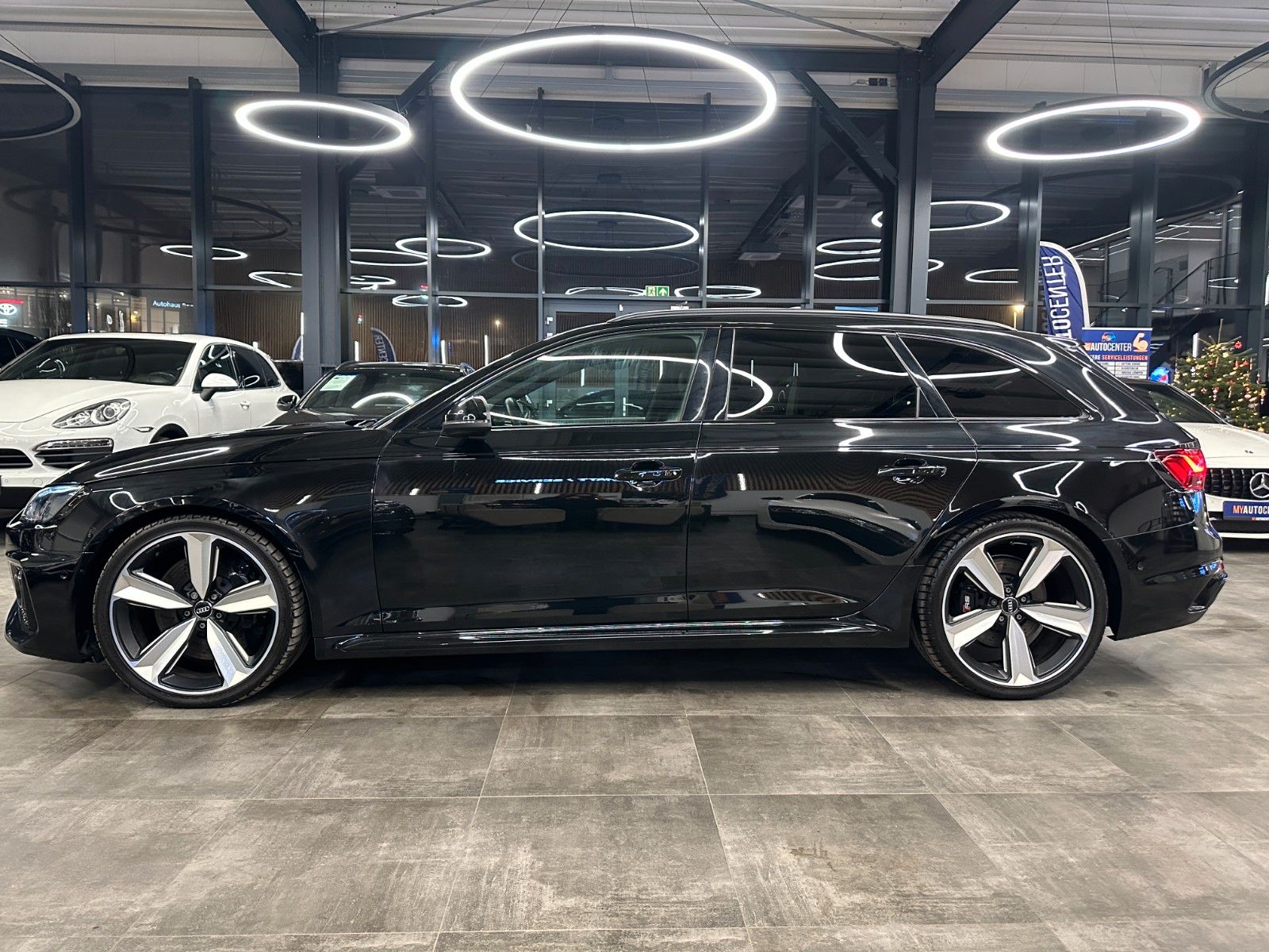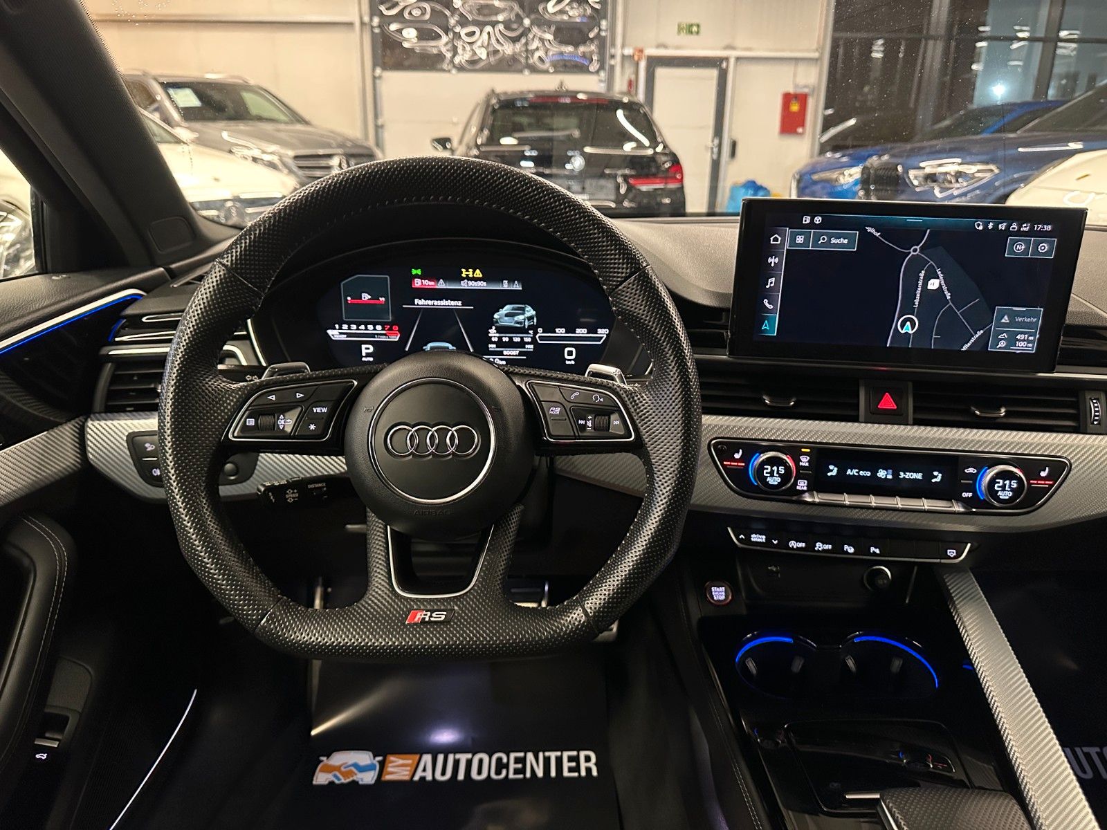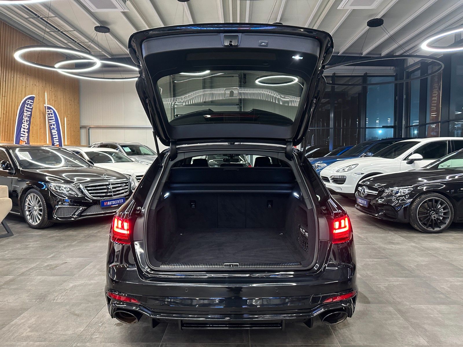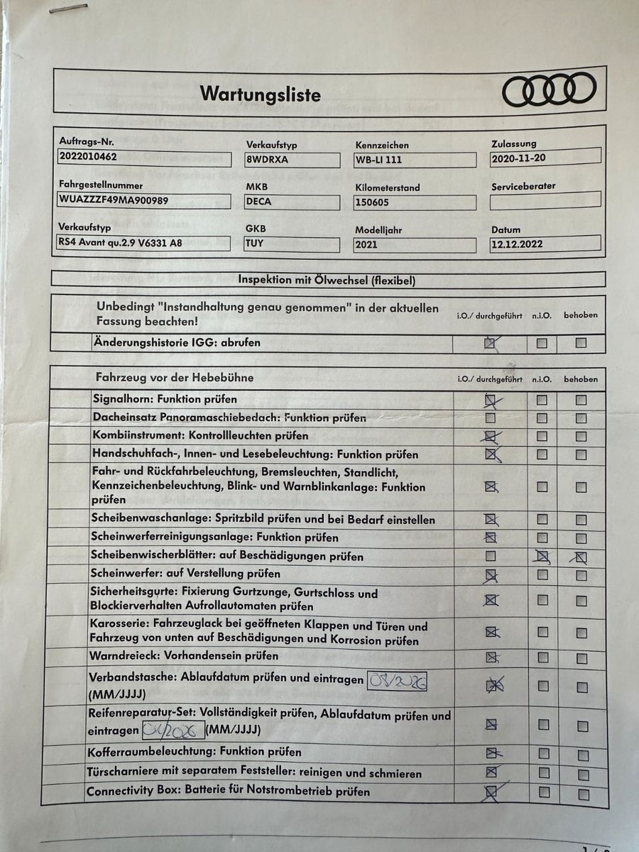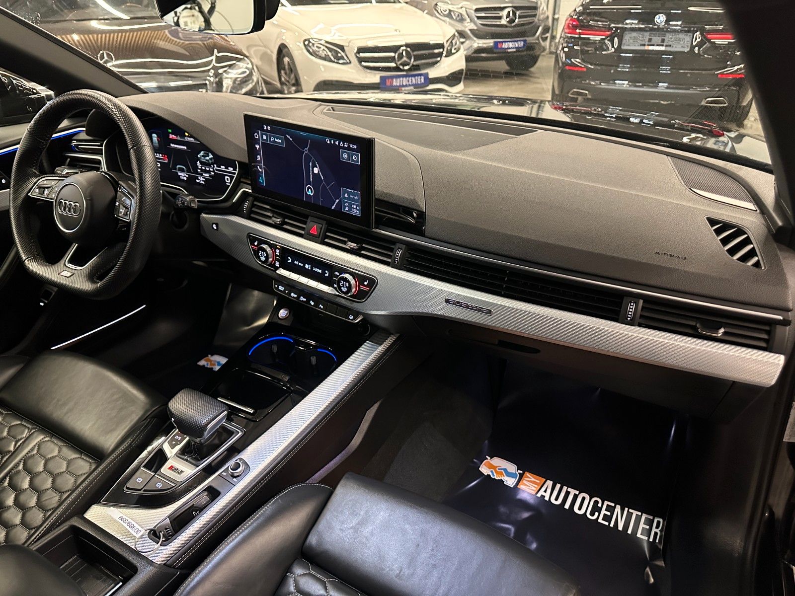 Assistenz-Paket Stadt mit Assistenz-Paket Parken, Assistenz-Paket Tour, Audi connect (Internetbasierende Dienste), Audi Ringe und Schriftzüge schwarz glänzend, Außenspiegel elektr. verstell-, heiz- und anklappbar, mit Abblendautomatik und Bordsteinautomatik, Bluetooth-Freisprecheinrichtung mit Spracherkennung (Audi Phone Box), Dynamik-Paket, Fahrassistenz-System: Anfahr-Assistent (hold assist), Head-up-Display, Innenspiegel mit Abblendautomatik, Kombiinstrument digital (virtual cockpit plus), Komfort-Klimaautomatik 3-Zonen, Kontur / Ambientebeleuchtungs-Paket (plus), LM-Felgen 9x20 (5-Segmentspeichen, Evo-Design, Schwarz, glänzend), LM-Felgen 9x20 (5-Segmentspeichen, Evo-Design, Schwarz, glänzend, für Winterbereifung), Metallic-Lackierung, Multi-Media-Interface MMI Navigation Plus mit MMI Touch, Optik-Paket schwarz plus, Panoramadach vorn elektrisch, hinten fest, RS-Sportabgasanlage, Sitzbezug / Polsterung: Leder Feinnappa, Wabensteppung mit Logo-Prägung in Vordersitzlehnen, Sound-System Bang & Olufsen, Verglasung hinten abgedunkelt (Privacyverglasung) und Türscheiben vorn Akustikglas