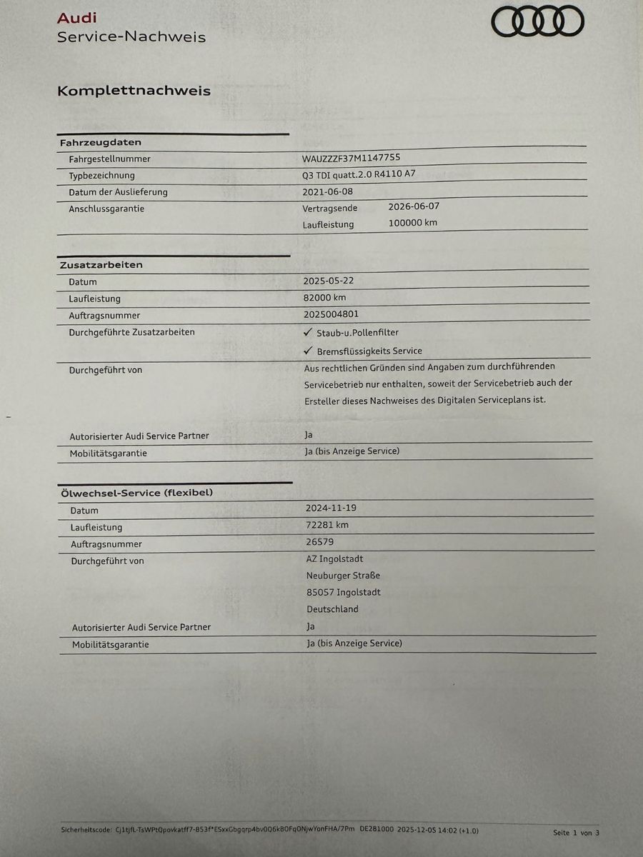 letzte Inspektion bei 82000 KM 05.2025
