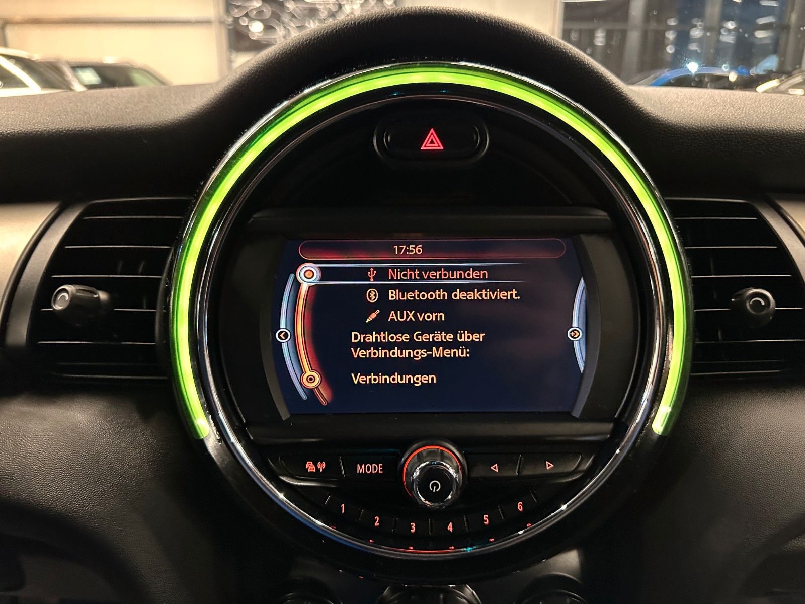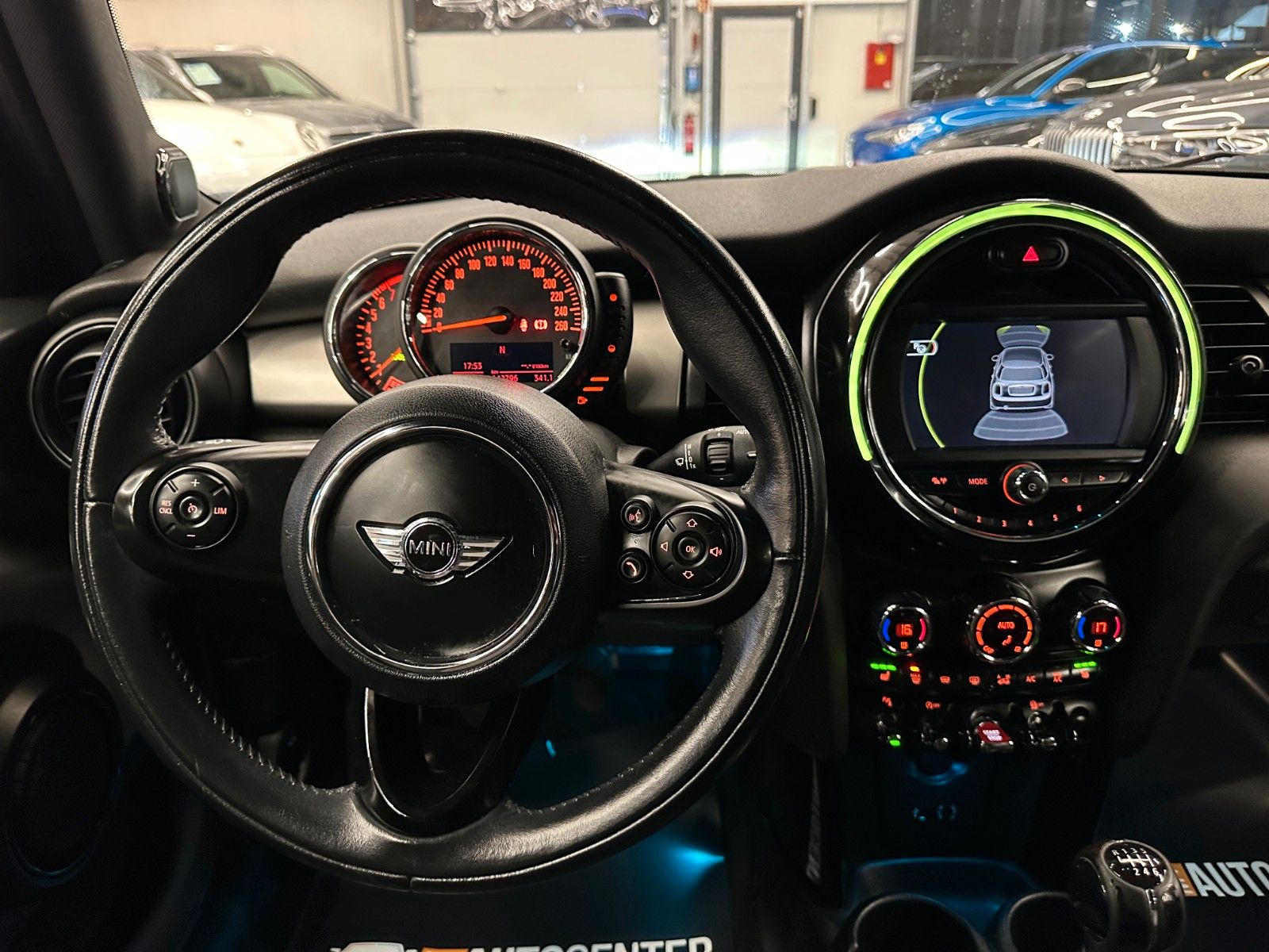 Audio-Navigationssystem, Ausstattungs-Paket: Chili, Chrome-Line Exterieur, Dachhimmel Anthrazit, Diebstahlsicherung für Räder (Felgenschlösser), Fahrassistenz-System: Park-Assistent, HiFi-Lautsprechersystem Harman-Kardon, Innenausstattung: Interieur-Oberfläche Dark Silver, LM-Felgen 7x18 (Vanity Spoke, Bicolor), MINI Connected (Schnittstelle), Park-Distance-Control (PDC) vorn und hinten, Reifensystem Run-Flat (mit Notlaufeigenschaften), Sicht-Paket, Sitzheizung vorn, Sonnenschutzverglasung