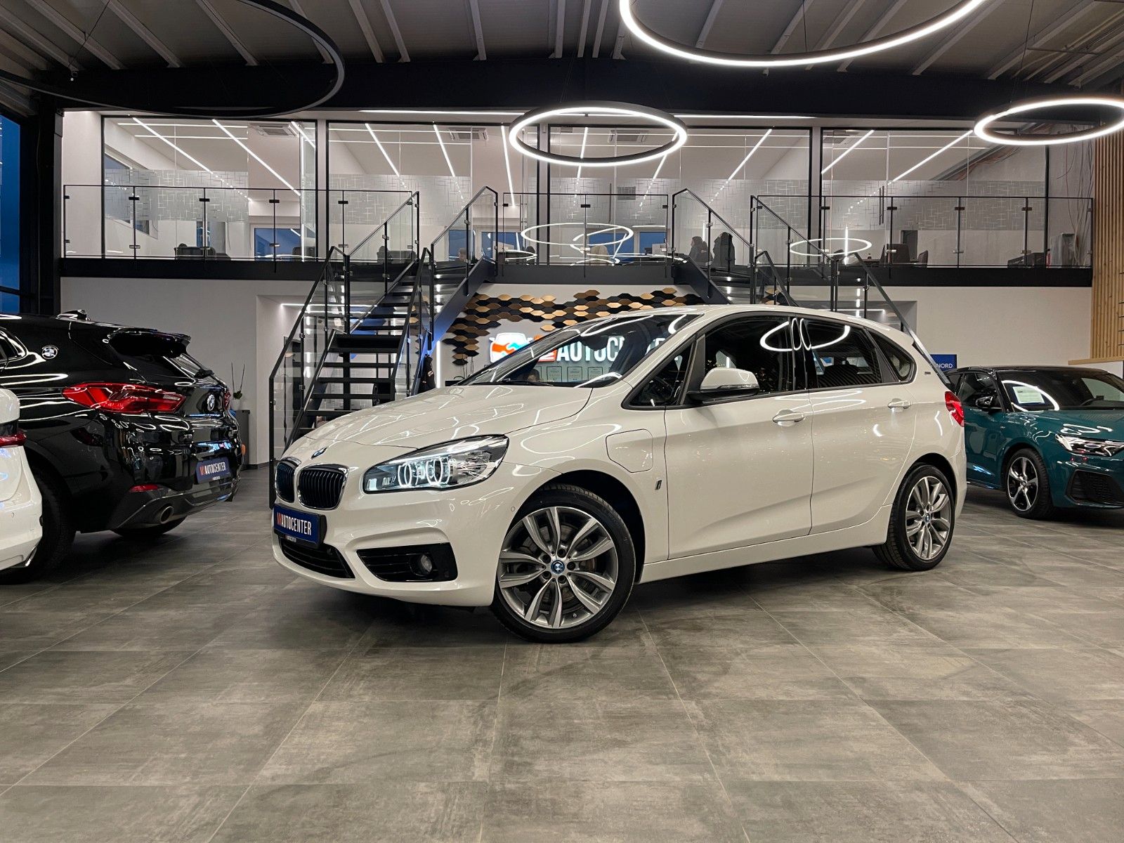 Ablage-Paket, Airbag Beifahrerseite, Airbag Beifahrerseite abschaltbar, Airbag Fahrer-/Beifahrerseite, Airbag Fahrerseite, Auspuffanlage (1-Rohr-Anlage) mit Blende, Außenspiegel elektr. verstellbar, Außenspiegel Wagenfarbe, Bordcomputer, Bremsassistent, Dynamische Bremsleuchte, Dynamische Tractions Control (DTC), Elektromotor 65 kW (Hybridantrieb), Fahrassistenz-System: Auffahrwarnsystem mit Bremsfunktion, Fahrassistenz-System: Aufmerksamkeits-Assistent, Fahrassistenz-System: Fahrerlebnisschalter, Fahrassistenz-System: Performance Control, Farbmonitor (6,5 Zoll), Freisprecheinrichtung Bluetooth mit USB-/Audio-Schnittstelle, Getränkehalter vorn und hinten, Heckklappenbetätigung automatisch, Heckleuchten LED, Hybrid 165 kW (Motor 1,5 Ltr. - 100 kW), Innenausstattung: Interieurleisten, schwarz hochglänzend, Isofix-Aufnahmen für Kindersitz an Rücksitz, Karosserie: 5-türig, Klimaautomatik 2-Zonen mit autom. Umluft-Control, Kopf-Airbag-System hinten, Kopf-Airbag-System vorn, Lenkrad (Sport/Leder), Lenksäule (Lenkrad) mechan. verstellbar, Licht-Paket, LM-Felgen, Lufteinlassblende schwarz hochglänzend, Mittelarmlehne hinten, Multifunktion für Lenkrad, Parkbremse elektrisch, Personalisierungssystem (Personal Profile), Reifendruck-Kontrollsystem, Rücksitzlehne geteilt/klappbar (40:20:40), Schadstoffarm nach Abgasnorm Euro 6, Schalt-/Wählhebelgriff Leder, Schaltpunktanzeige, Scheibenwaschdüsen und Außenspiegel beheizt, Seitenairbag hinten, Seitenairbag vorn, Service-System: ConnectedDrive Services, Service-System: eDrive Services, Service-System: Intelligenter Notruf inkl. TeleServices, Sitzbezug / Polsterung: Stoff Race, Sitze hinten mechanisch verstellbar, Sitze vorn mechanisch verstellbar, Sport Line, Sportsitze vorn, Start-Stop-Knopf, Start/Stop-Anlage (Funktion), Variable Sportlenkung, Wärmeschutzverglasung getönt----