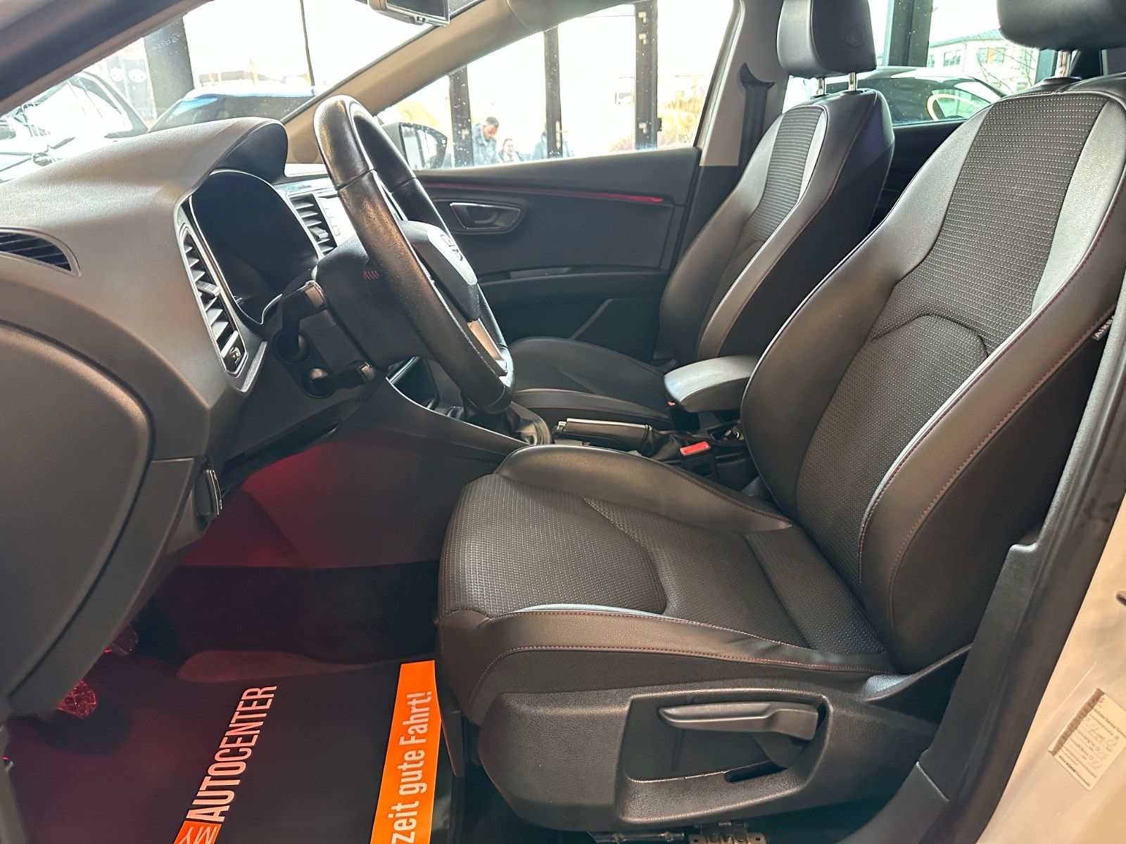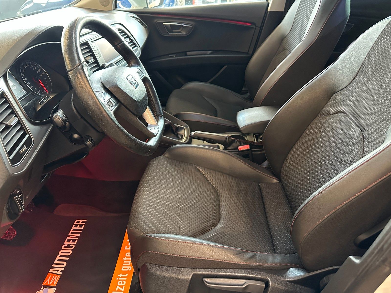 Ablagetasche an Vordersitzlehnen, Airbag Beifahrerseite abschaltbar, Airbag Fahrer-/Beifahrerseite, Antriebs-Schlupfregelung (ASR), Außenspiegel elektr. anklappbar, Außenspiegel elektr. verstell-, heiz- und anklappbar, beide, Außenspiegel und Türgriffe außen in Wagenfarbe, Außentemperaturanzeige, Blinkleuchten LED in Außenspiegel integriert, Bordcomputer, Bremsassistent, Elektron. Differentialsperre (EDS), Fahrassistenz-System: Berganfahr-Assistent (Hill-Holder), Fahrassistenz-System: Berganfahr-Assistent und Elektron. Differentialsperre, Fahrassistenz-System: Fahrprofilauswahl (SEAT Drive Profile), Fensterheber elektrisch hinten, Handschuhfach beleuchtet, Heckleuchten LED, Innenausstattung: Chrom-Applikationen, Isofix-Aufnahmen für Kindersitz, Karosserie: 5-türig, Klimaanlage Climatronic 2-Zonen, Knieairbag Fahrerseite, Kopf-Airbag-System, Kopfstützen hinten (3-fach), Kopfstützen vorn verstellbar, Lendenwirbelstütze Sitz vorn links, verstellbar, Lendenwirbelstütze Sitz vorn rechts, verstellbar, Lenkrad (Sport/Leder), LM-Felgen, Mittelkonsole vorn mit Mittelarmlehne, Becherhalter, Ablagebox und Luftdüsen hinten, Modellvariante CO2-optimiert (Ecomotive), Motor 2,0 Ltr. - 110 kW TDI, Reifenkontroll-Anzeige, Rücksitzlehne geteilt/klappbar (1/3-2/3), Schadstoffarm nach Abgasnorm Euro 5, Schalt-/Wählhebelgriff Leder, Seitenairbag, Seitenscheiben hinten und Heckscheibe abgedunkelt, Sitz vorn links höhenverstellbar, Sitz vorn rechts höhenverstellbar, Sonnenblende links mit Spiegel (beleuchtet), Sonnenblende rechts mit Spiegel (beleuchtet), Sport-Fahrwerk FR / Cupra, Sportsitze vorn, Sprachsteuerungs-System, Stau-/Ablagefach unter Sitze vorn, Steckdose (12V-Anschluß) vorn, Stoßfänger lackiert, Wärmeschutzverglasung