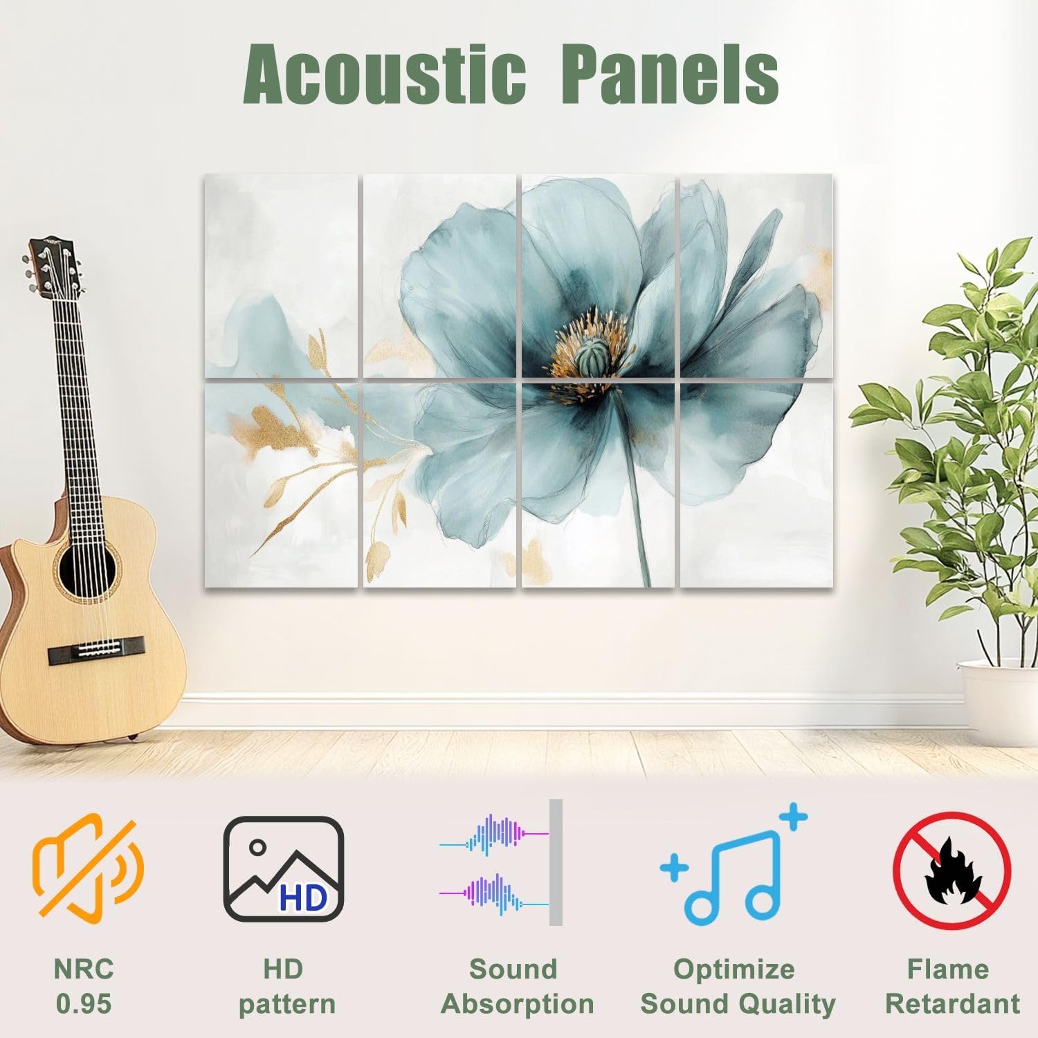 Art sound-absorbing panels achieve the effect of combining acoustic treatment and decoration.If you want to have a relatively quiet environment and also want to decorate your walls and space, our products can meet your needs.We have a variety of styles, such as modern style, retro style, simple style, luxury style, palace style, etc., to meet your different decoration needs.Installation method and steps:1. Before installation, please clean the wall carefully. Make sure that the wall is flat, dry.2. Confirm the direction and position of each panel to ensure the correct combination of patterns.3. Peel off the protective film of the 3M double-sided tape on the back of the sound-absorbing panel, stick the sound-absorbing panel to the desired position, and press for 5 seconds.Warm Tips:1. Due to different measuring tools, the size may have a slight deviation of 1-3cm.2. Due to different monitors, the color may be slightly different.3. If you have any questions, you can tell us.