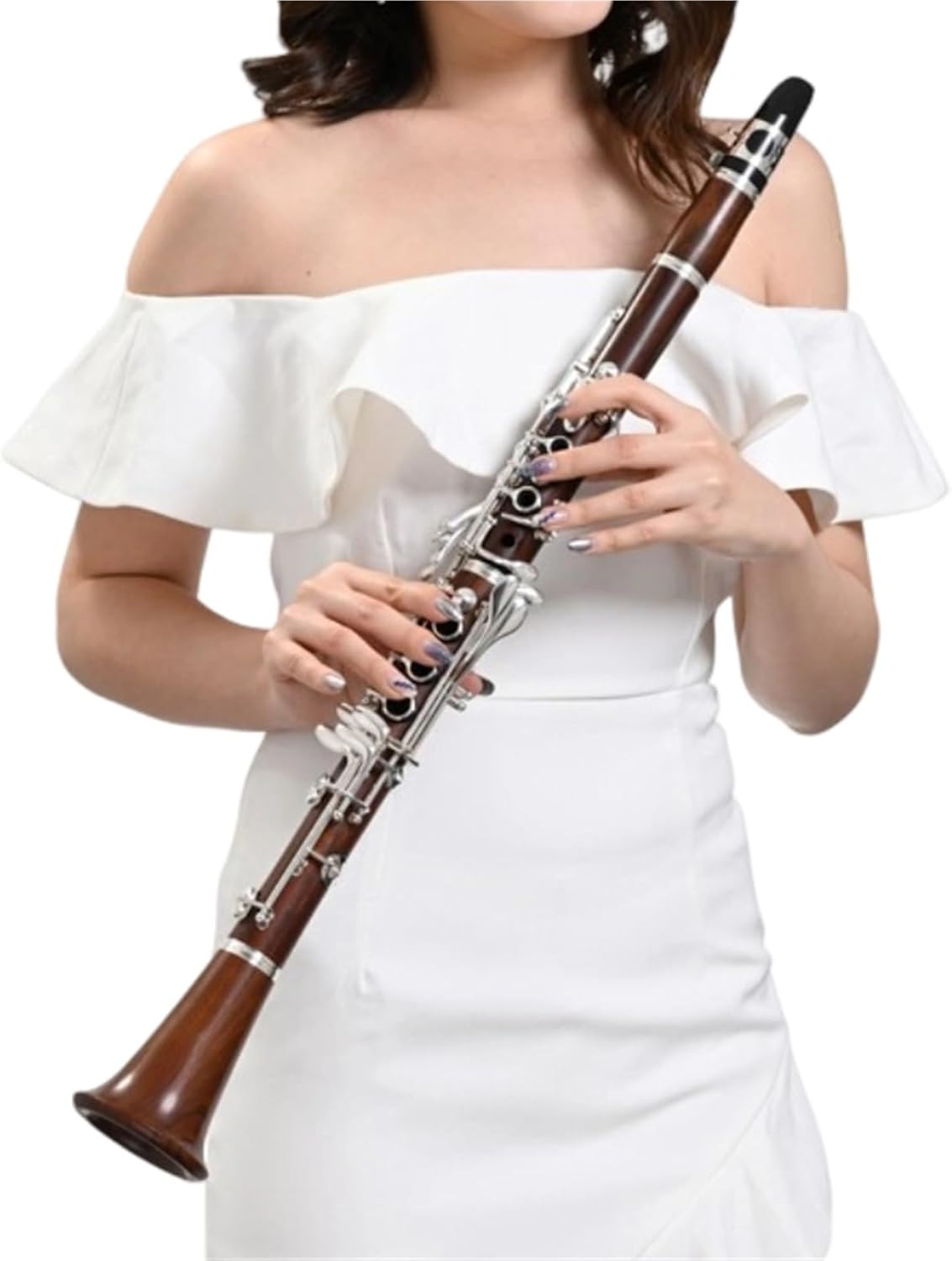 This exquisitely designed clarinet boasts a tone and is an excellent choice for you.Origin: Mainland ChinaName: clarinetKey: BbMaterial: RosewoodNumber of Keys: 17Plating: Silver platingKey Material: White brassSolid Material: RosewoodColor: RedEnsuring a pleasant shopping experience. Please feel free to contact us with any questions, concerns, or assistance.