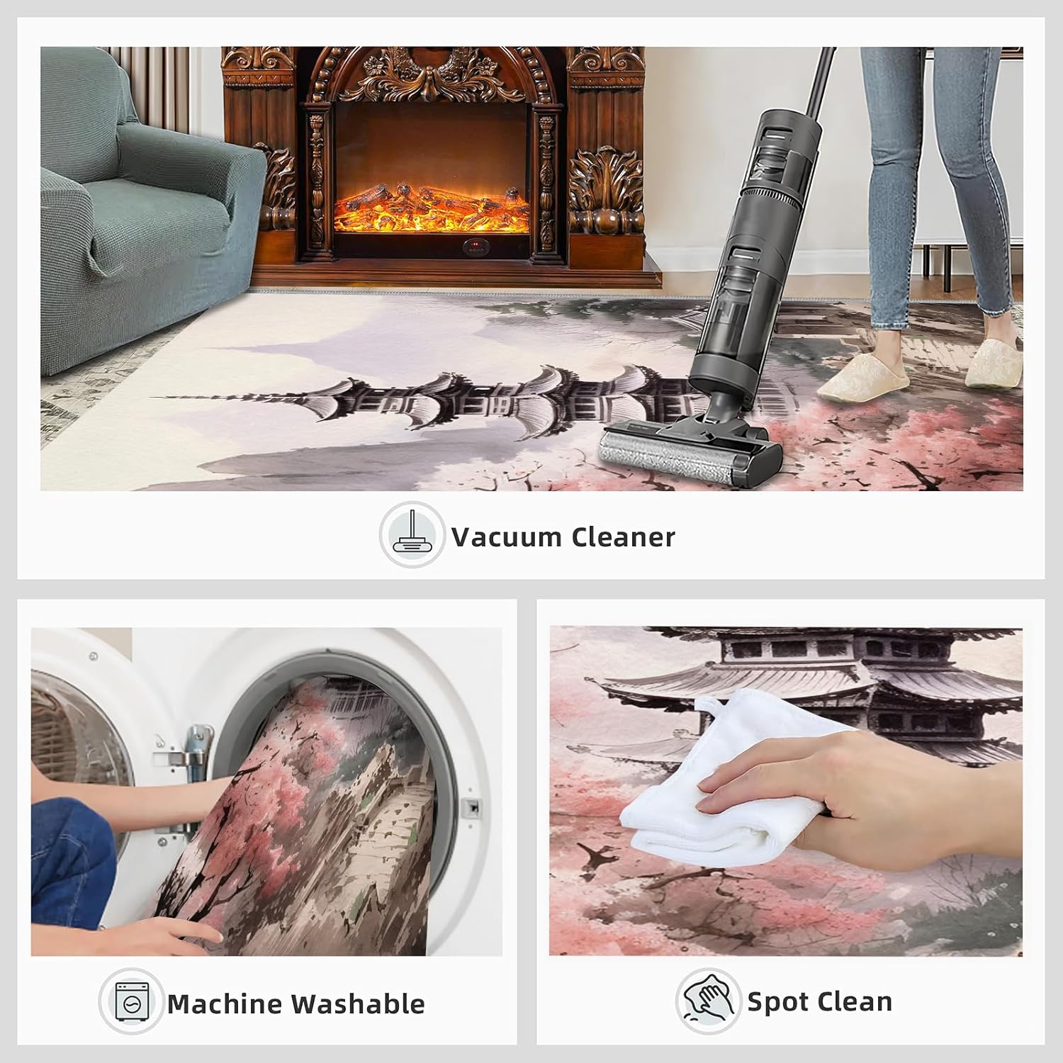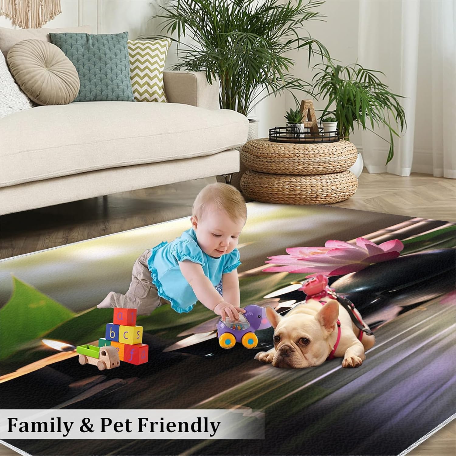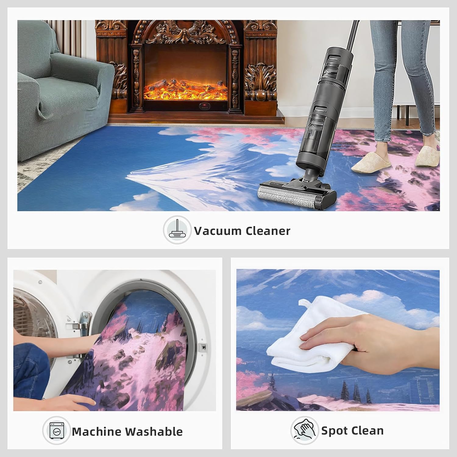 There is always a carpet that knows your are extraordinary and exquisite.Area rug complements the space, and coordinates effortlessly with furniture and wall art a warm and cozy vibe and bright colors to your home.Use premium flannel fabric, sponge layer; non-slip plastic bottom, expertly woven by machine; The rug clear picture quality resists color fading, it will withstand the day-to-day wear and tear.It protects your floors from furniture scratches and other potential damage and provides lasting beauty for years to come.Soft carpets reduce noise and can be walked on barefoot, creating a quieter environment.Area rugs add the perfect finishing touch to any interior, such as a living room, bedroom, home, study, kid's room or dorm room.Area carpets are easy to clean, you can wipe or shake them during daily cleaning, you can also use a vacuuming cleaner. For hard to remove stains recommend that the rug be professionally cleaned.Specifications:Size/ Weight:2' x 3' / 24"W x 36"L / 1.3LbMaterial:Flannel; Sponge layer; Rubber non-slip bottom.Packing list: Carpet × 1Tips:1. Should there be a crease in the rug, put pressure at the point of the visible crease, loosening the crease allowing the rug to flatten out.2. Due to shooting angle, light, display and other factors, slight color difference is normal.