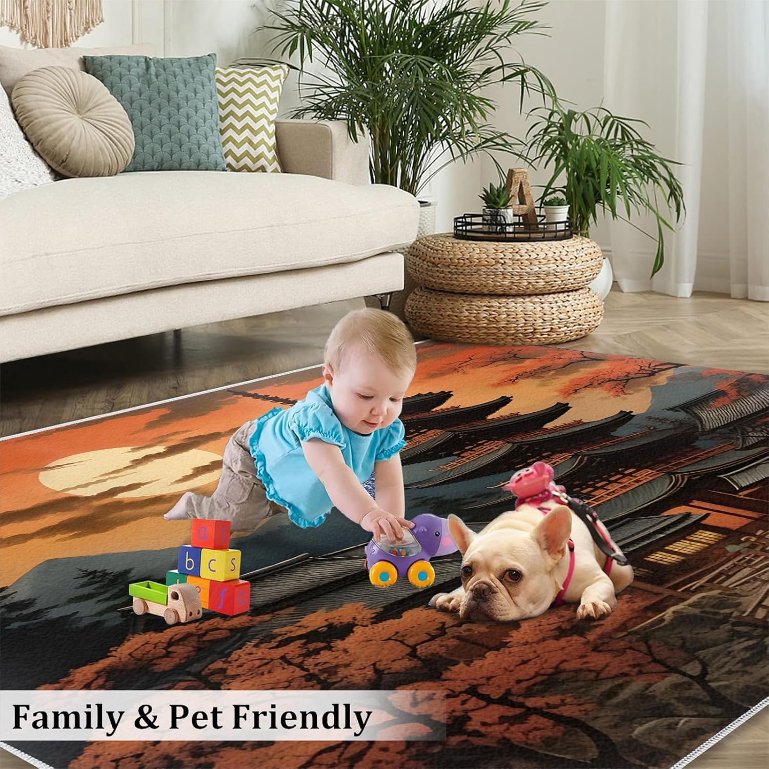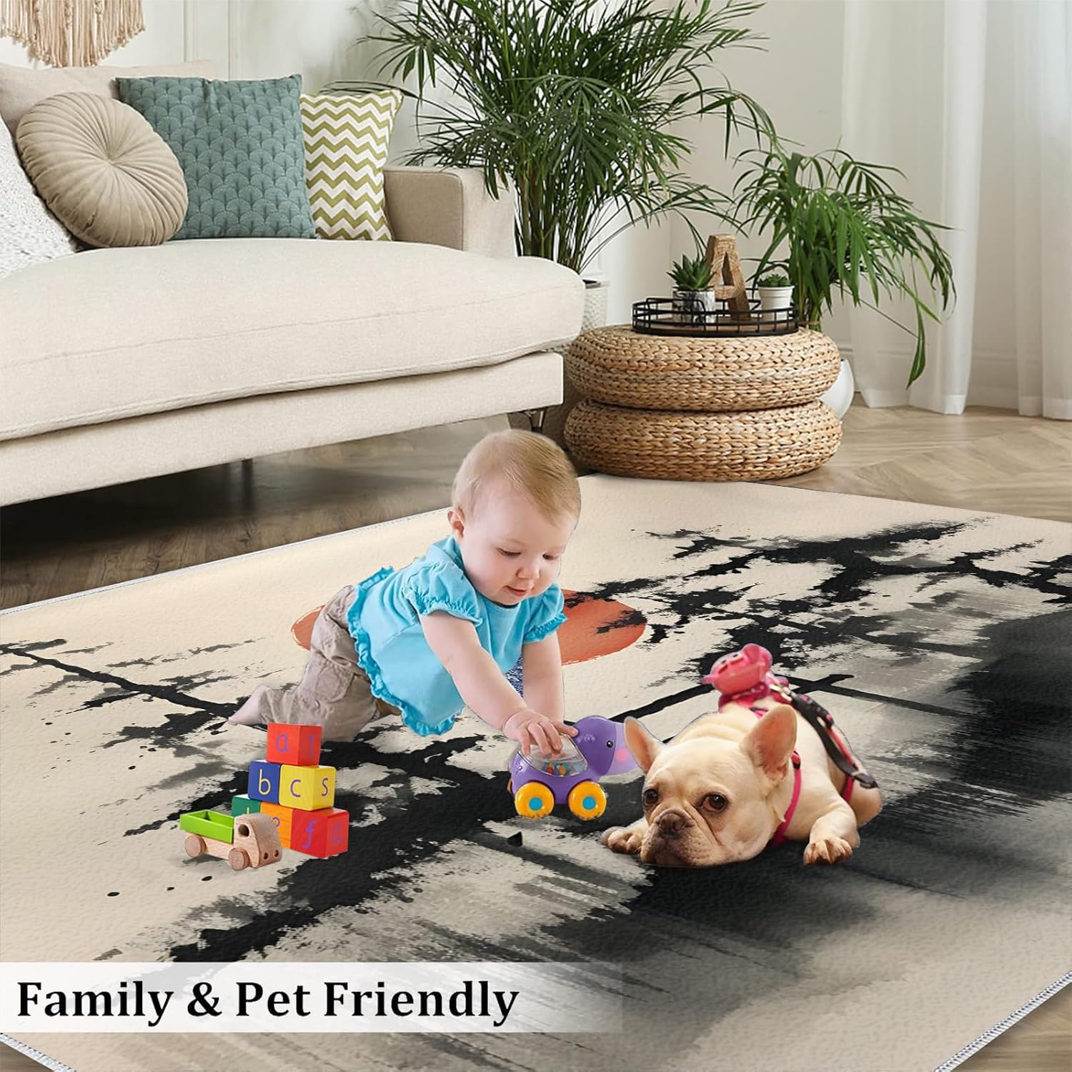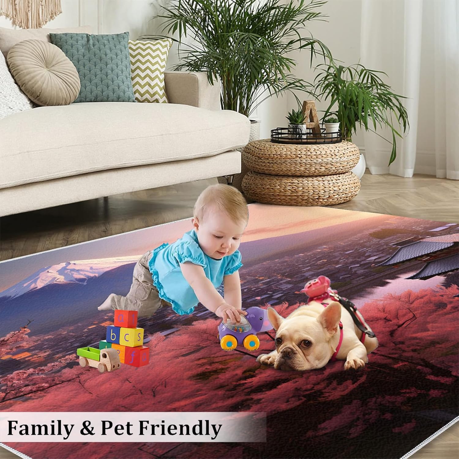There is always a carpet that knows your are extraordinary and exquisite.Area rug complements the space, and coordinates effortlessly with furniture and wall art a warm and cozy vibe and bright colors to your home.Use premium flannel fabric, sponge layer; non-slip plastic bottom, expertly woven by machine; The rug clear picture quality resists color fading, it will withstand the day-to-day wear and tear.It protects your floors from furniture scratches and other potential damage and provides lasting beauty for years to come.Soft carpets reduce noise and can be walked on barefoot, creating a quieter environment.Area rugs add the perfect finishing touch to any interior, such as a living room, bedroom, home, study, kid's room or dorm room.Area carpets are easy to clean, you can wipe or shake them during daily cleaning, you can also use a vacuuming cleaner. For hard to remove stains recommend that the rug be professionally cleaned.Specifications:Size/ Weight:2' x 3' / 24"W x 36"L / 1.3LbMaterial:Flannel; Sponge layer; Rubber non-slip bottom.Packing list: Carpet × 1Tips:1. Should there be a crease in the rug, put pressure at the point of the visible crease, loosening the crease allowing the rug to flatten out.2. Due to shooting angle, light, display and other factors, slight color difference is normal.