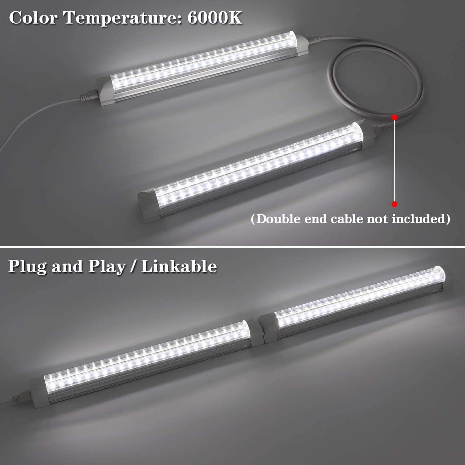 Warm Reminding! Risk of shock - Disconnect Power Before Installtion. Make sure to remove or bypass the ballast. Not use with dimmers. Not suitable for damp locations. Need any support, please contact us through manual. Package include 2 x T8 Integrated 1FT LED Fixture(12-9/16″) 2 x Power cord with On/Off Switch (70-55/64″) 2 x Small connectors 2 x Power cords(9-27/32″) 2 x End caps 4 x Mount clips 4 x Screws Specification Power: 9W Length: 1FT(12-9/16″) Cover: Clear Cover Luminous Flux: 110-120lm Per Watt LEDs: 48 PCS SMD 2835 Epistar LED Chips Color Temperature: 6000K Cool White Is Dimmable: No Beam Angle: V-Shaped 270 Degrees Color Rendering Index(CRI): 85 Lamp Power Factor: 0.95 Input Voltage: AC85~265V Material: Top quality Aluminum & superior PC Features (1).Highly efficient 110~120 lumens output per watt. (2).Low power consumption and low thermal output. (3).Plug and play. Easy to install. (4).Lower maintenance costs compared to existing lighting. (5).Long life span: 50000 hours - lasts up to 10 x longer than conventional lighting. Application Garage, offices, plazas, hospitals, hotels, terminal buildings, schools, supermarkets, subways.