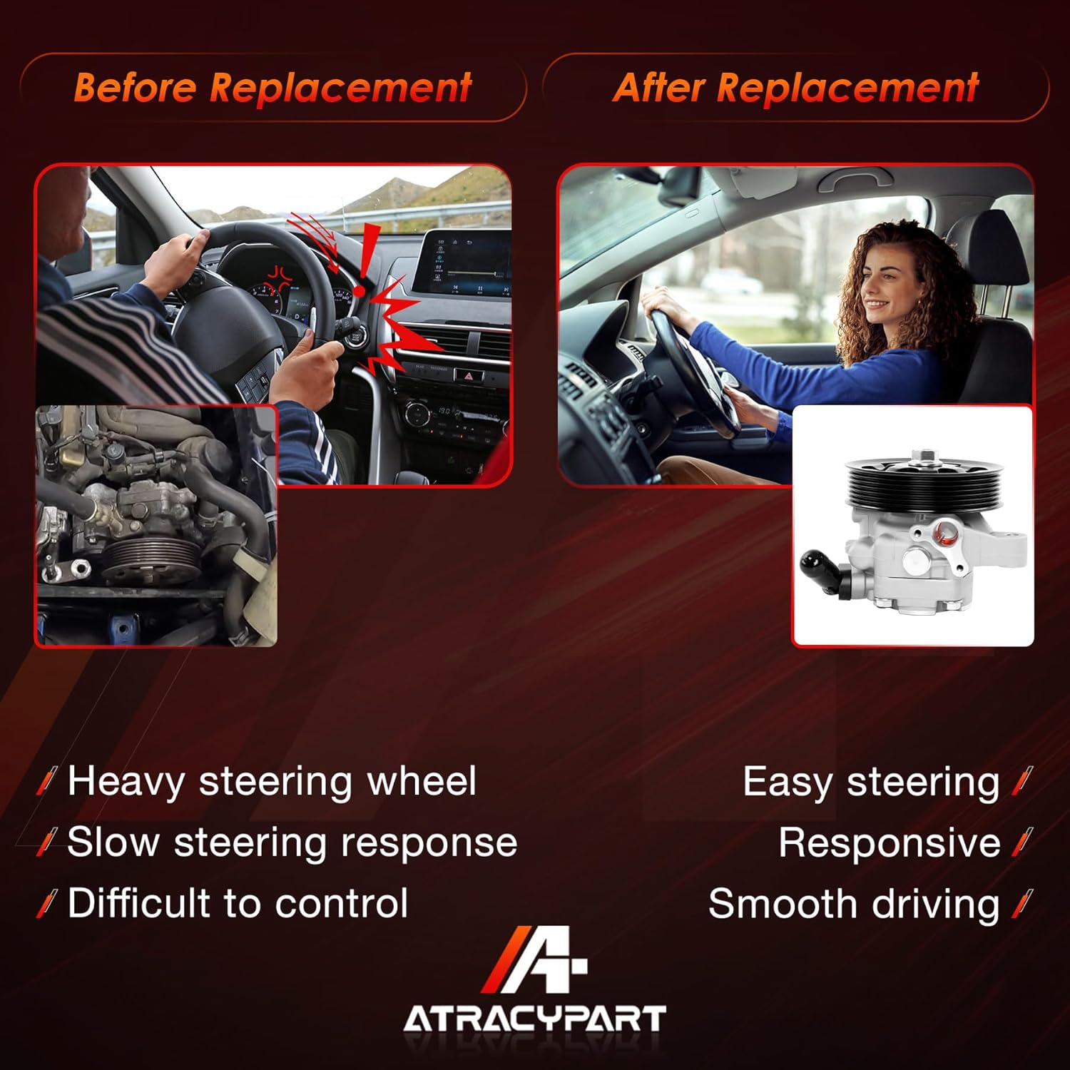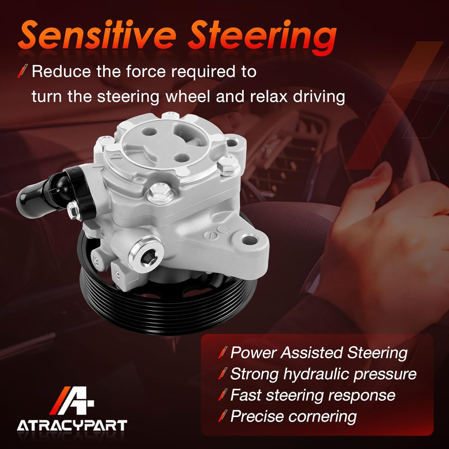 Restore smooth, effortless steering with this premium Power Steering Pump with Pulley. Designed for select Honda and Acura models, it delivers stable hydraulic pressure to eliminate heavy or jerky steering. Built with a durable aluminum housing and heat-treated iron internals, it offers quiet performance and long-lasting reliability. Pre-installed pulley ensures fast, easy installation. A perfect OE replacement for worn or leaking pumps—drive safer and steer smoother today! 🔍QUESTION&ANSWER Q1: Does this fit 3.0L V6 Accord? A:No. This pump only fits 2.0L / 2.3L / 2.4L 4-cylinder engines listed above. Q2: Does it come with reservoir? A:No. This listing includes the power steering pump with pulley only. Reservoir is not included. Q3: Is this a rebuilt pump? A:No. This is a brand-new aftermarket power steering pump, not remanufactured. Q4: Will it fix steering noise? A:If noise is caused by a worn pump, this replacement will restore normal steering performance. Please also check fluid condition and belt tension. ⚡COMPATIBLE WITH: 2005-2011 Honda CR-V 2.4L L4 2006-2007 Honda Accord 2.4L L4 2006-2011 Honda Element 2.4L L4 2002-2006 Honda Acura RSX 2.0L L4 2006-2008 Honda Acura TSX 2.4L L4 📌 Fitment Note – Please confirm vehicle model & engine before purchase ⚡Replace Part Number: 21-5419、96-5419、 56110-PNB-A03、56110-PNB-A04、56110-PNB-A01、56110-PND-J0156110-RBB-E02、56110-PZD-A02、19319299、215419、56110PNBA0156110PNBA03、56110PNBA04、9900521、56110PND003、56110PNDA01、56110PNDA5156110PNDJ01、56110PZDA02、56110RAAA02、56110RBBE02、56110RTA00356110PNB306、56110RTA013、56110RWC305、56110RWCA01 Package Including 1 * power steering pump with pully At ATRACYPART, we take pride in the quality of our products and in your satisfaction. If you have any problems, do not hesitate to contact us.