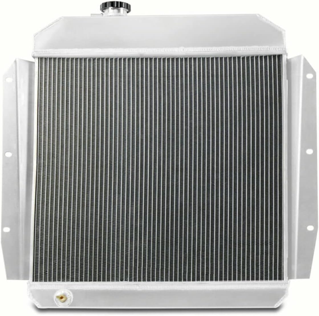 The aluminum radiator is designed to provide maximum cooling efficiency to prevent premature engine failure. Its light-weight,and high heat transferring aluminum features a tube and fin design that,dramatically increases surface area that enables the heat to dissipate more efficiently. This Aluminum Radiator is at least 40% more efficient than stock ones. Most importantly,it has a much higher capacity for coolant than stock ones,which means that your cooling system will be more efficient and will be more resistant to temperature surges in racing applications. Full TIG-welded radiator includes high-pressure rad cap and drain plug Stringently tested to guarantee optimum performance and dependability Machined-billet filler neck for better pressure control Use of Nitrogen during welding in the furnace for maximum strength 100% brazed aluminum core, TIG-welded to aluminum end tanks for superior durability and longevity Radiator Flow: Down Flow Core Thickness: 2 1/2" Core Dimensions (H x W): 19 3/8'' x 21 7/8'' Overall Dimensions (H x W): 25 1/8'' x 26 7/8'' Hose Locations: IN: Center / OUT: Passenger Hose Fittings: IN: 1 1/2'' - OUT: 1 3/4'' Trans Cooler Details:¢26*205*G1/4 Mounting Type: Bracket