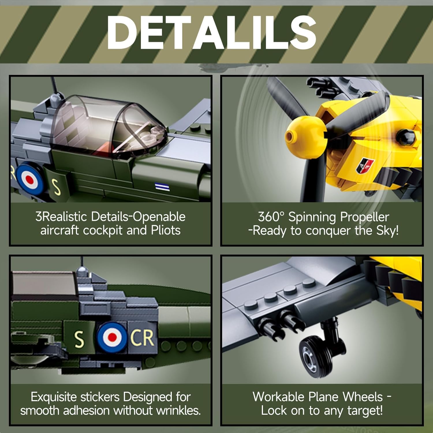 Sosuy WW2 Building Block Military Plane-Sets for Boys Men, 1:32 Movable UK Spitfire & GE BF-109 Army Toys for Kids Ages 8+,Spinning Propeller Pilots History Birthday Gifts for Teen Girls 580+ Pieces