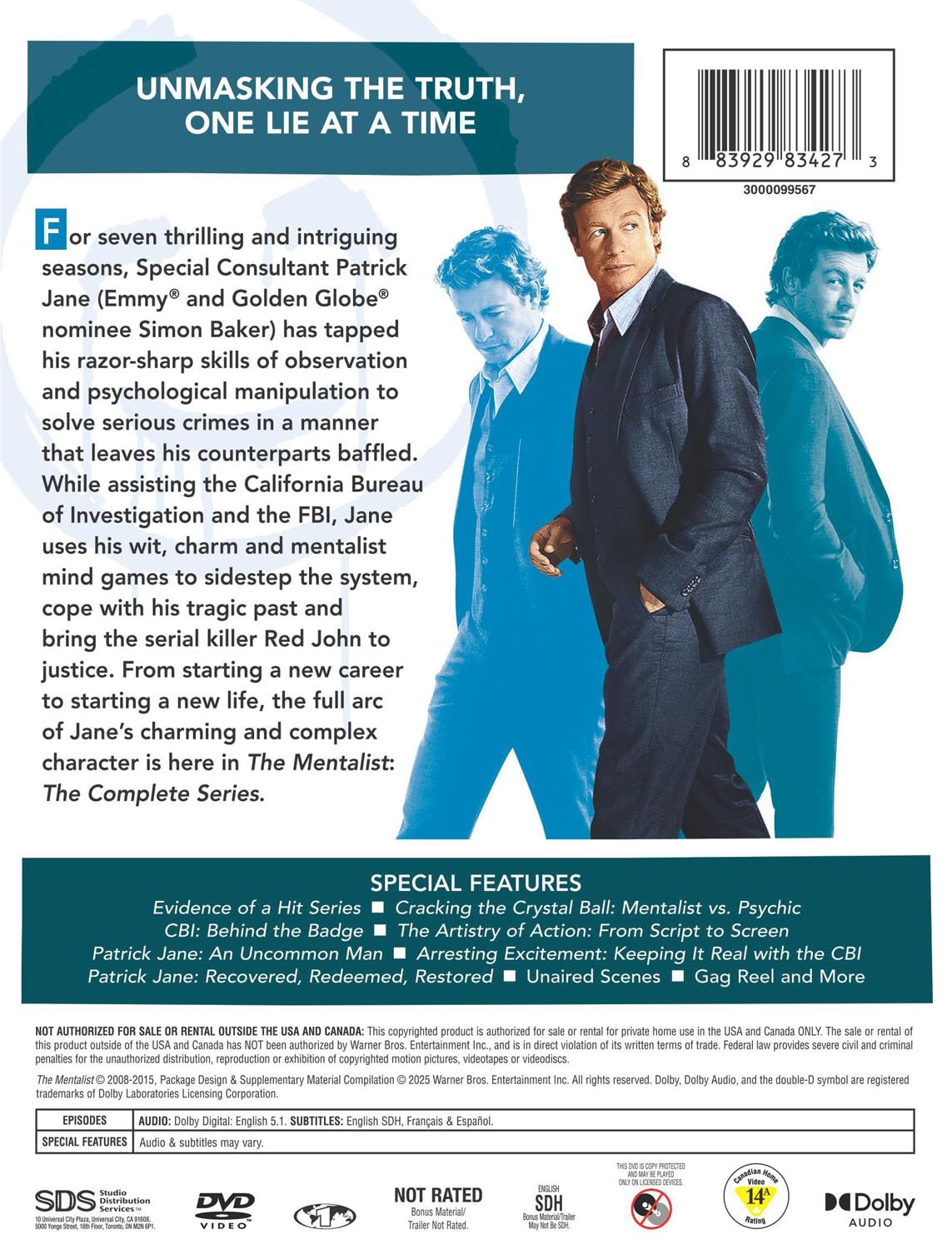 Special Consultant Patrick Jane has tapped his razor-sharp skills of observation and psychological manipulation to solve serious crimes in a manner that leaves his counterparts baffled. While assisting the California Bureau of Investigation and the FBI, Jane uses his wit, charm and mentalist mind games.