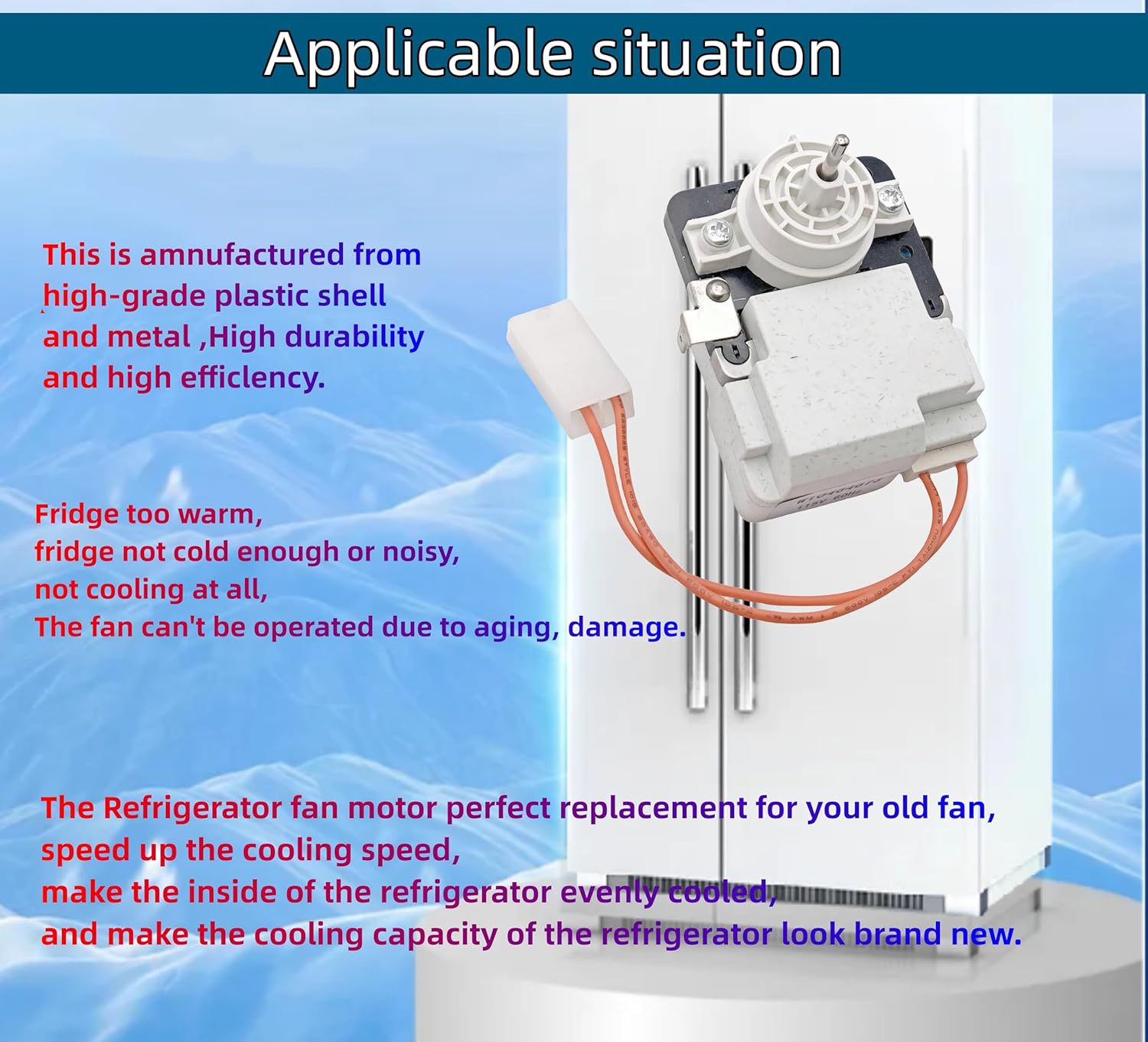 Model: W10464673 The Refrigerator Evaporator Fan Motor W10464673 Compatible with whirlpool KFFS20EYMS02, KRFF300EBL00, KRFF300EBS00, KRFF30OESS0, KFFS20EYBL02, KFFS20EYBL04, 10673002511, 10673003510, MFB2055YEM02, MFB205 5YEW01, MFF2055YEB02, MFF2055YEW00, MFW2055FRH00, MFB2055FRW00,Replacement Part Number: WPW10464673 PS7320664 PS11755167 3020513 AP6021839. Voltage: AC 115V, 60Hz,2-pin connector, Shaft Length: 14mm, Shaft diameter: 3mm, Line length: 13 cm 5.11in, Warranty: 3-year. Applicable Situation: Fridge too warm, fridge not cold enough or noisy, not cooling at all, The fan can't be operated due to aging, damage. The Refrigerator fan motor perfect replacement for your old fan, speed up the cooling speed, make the inside of the refrigerator evenly cooled, and make the cooling capacity of the refrigerator look brand new,Housing made of high-quality ABS plastic, The motor circuit is made of high-quality metal inside, with long service life and strong reliability, Easy to install, just install it directly. You can easily find the installation method by searching the online video site for the part number. Unplug the refrigerator and safely store any food that could deteriorate while the power is off before installing this part. Package include: 1piece New Refrigerator Evaporator Fan Motor. Please check the confirmation picture and part number before purchasing. Our products are brand new, Our Fan Motor Unlimited return and refund service in 90 days. if you have any questions after receiving the package, please feel free to contact us, we will contact you within 24 hours on working days.